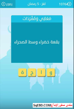 جواب لغز بقعة خضراء وسط الصحراء من لغز 5 رمضان من لعبة رشفة رمضانية