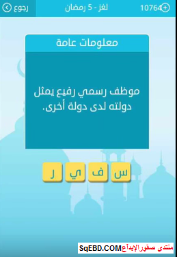 جواب لغز موظف رسمي رفيع يمثل دولته لدى دولة أخرىمن لغز 5 رمضان من لعبة رشفة رمضانية