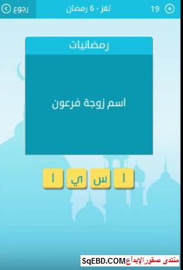 حل لغز اسم زوجة فرعون من لغز 6 رمضان من لعبة رشفة رمضانية