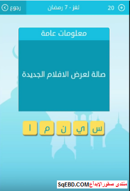 حل لغز صالة لعرض الأفلام الجديدة من لغز 7 رمضان من لعبة رشفة رمضانية