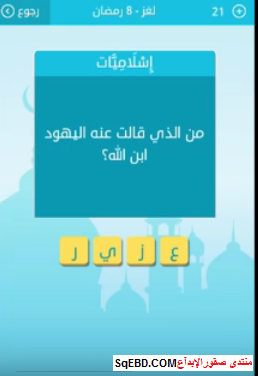 جواب لغز من الذي قالت عن اليهود ابن الله من لغز 8 رمضان من لعبة رشفة رمضانية