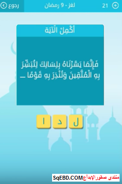 اجابة لغز فإنما يسرناه بلسانك لتبشر به المتقين وتنذر به قوما .... من لغز 9 رمضان من لعبة رشفة رمضانية