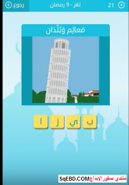 حل لغز معالم وبلدان من لغز 9 رمضان من لعبة رشفة رمضانية
