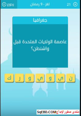 جواب سؤال عاصمة الولايات المتحدة قبل واشنطن من لغز 9 رمضان من لعبة رشفة رمضانية