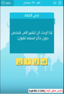حل لغز اذا اردت ان تشير الي شخص دون ذكر اسمه تقول من لغز 10 رمضان من لعبة رشفة رمضانية