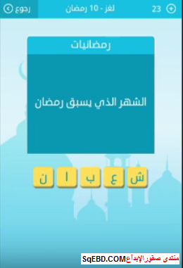 اجابة لغز الشهر الذي يسبق رمضان من لغز 10 رمضان من لعبة رشفة رمضانية