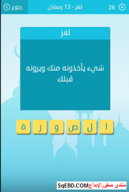 حل لغز شيء يأخذونه منك ويرونه قبلكمن لغز 13 رمضان من لعبة رشفة رمضانية