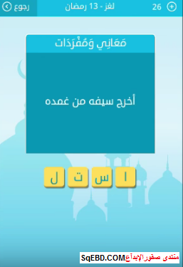 جواب لغز اخرج يسفه من غمده من لغز 13 رمضان من لعبة رشفة رمضانية