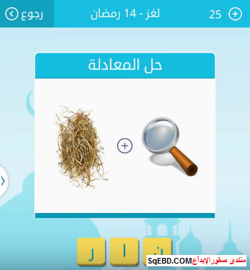 جواب سؤال حل المعادلة عشب + مجهر لغز 14 من لعبة رشفة رمضانية
