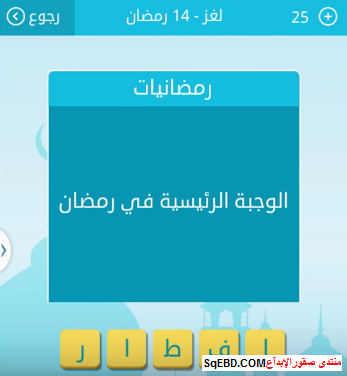 اجابة لغز الوجبة الرئيسية في رمضان لغز 14 من لعبة رشفة رمضانية
