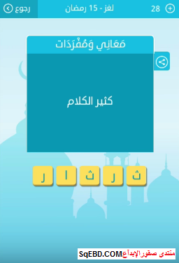 جواب لغز كثير الكلام لغز 15 من لعبة رشفة رمضانية