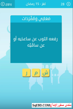 حل سؤال رفعه الثوب عن ساعديه او ساقيه لغز 15 من لعبة رشفة رمضانية