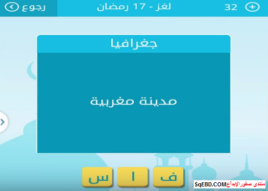 اجابة لغز مدينة مغربية من 3 حروف من لغز 17 رمضان من لعبة رشفة رمضانية