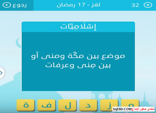 اجابة سؤال موضع بين مكة ومنى او بين منى وعرفات من لغز 17 رمضان من لعبة رشفة رمضانية