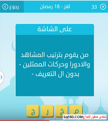 جواب لغز من يقوم بترتيب المشاهد والادورا وحركات الممثلين- بدون ال التعريف - من لغز 18 رمضان من لعبة رشفة رمضانية