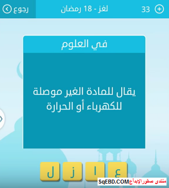حل لغز يقال للمادة الغير موصلة للكهرباء او الحرارة من 4 حروفمن لغز 18 رمضان من لعبة رشفة رمضانية