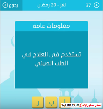 جواب سؤال تستخدم في العلاج في الطب الصينيمن لغز 20 رمضان من لعبة رشفة رمضانية
