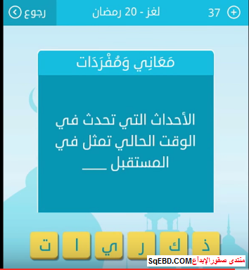 جواب لغز الاحداث التي تحدث في الوقت الحالي تمثل في المستقبل... من لغز 20 رمضان من لعبة رشفة رمضانية