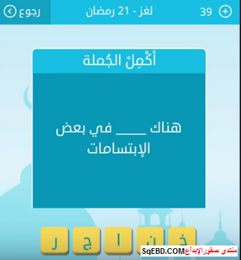 جواب لغز اكمل الجملة هناك .... في بعض الابتسامات 21 رمضان من لعبة رشفة رمضانية