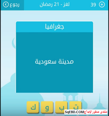جواب سؤال مدينة سعودية 21 رمضان من لعبة رشفة رمضانية