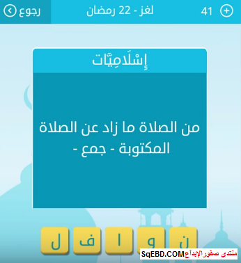 جواب سؤال من الصلاة مازاد عن الصلاة المكتوبة - جمع 22 رمضان من لعبة رشفة رمضانية