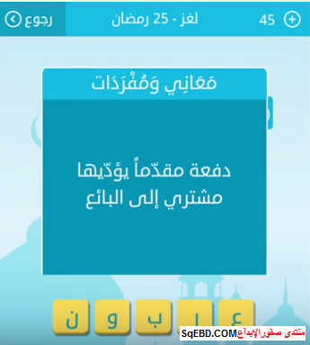 جواب سؤال دفعة مقدما يؤيدها مشتري الي البائع 25 رمضان من لعبة رشفة رمضانية