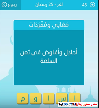 اجابة لغز اجادل وافاوض في ثمن سلعة 25 رمضان من لعبة رشفة رمضانية