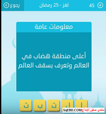 جواب سؤال اعلي منطقة هضاب في العالم وتعرف بسقف العالم 25 رمضان من لعبة رشفة رمضانية