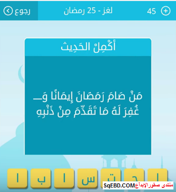 جواب لغز من صام رمضان ايمانا و ... غفر له ما تقدم من ذنبه 25 رمضان من لعبة رشفة رمضانية