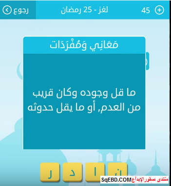 جواب سؤال ما قل وجوده وكان قريب من العدم او ما يقل حدوثه 25 رمضان من لعبة رشفة رمضانية
