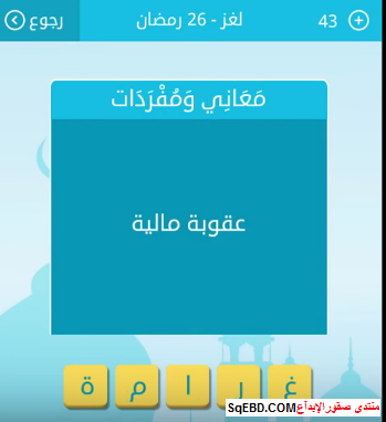 جواب سؤال عقوبة مالية 26 رمضان من لعبة رشفة رمضانية