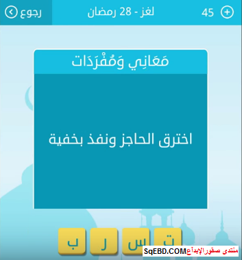 جواب سؤال اخترق الحاجز ونفذ بخفية 28 رمضان من لعبة رشفة رمضانية