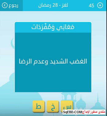 حل سؤال الغضب الشديد وعدم الرضا 28 رمضان من لعبة رشفة رمضانية