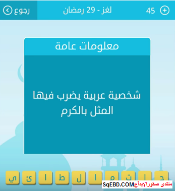 حل لغز شخصية عربية يضرب فيها المثل بالكرم 29 رمضان من لعبة رشفة رمضانية