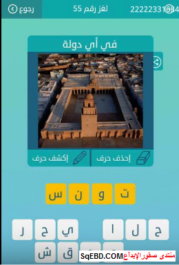 حل لغز فى اى دولة من لغز رقم 55 من المجموعة السابعة من لعبة كلمات متقاطعة