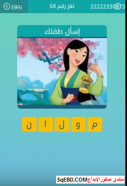 اجابة لغز اسال طفلك من لغز رقم 68 من المجموعة السابعة من لعبة كلمات متقاطعة