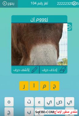 اجابة لغز زوووم ان لغز رقم 104 من المجموعة الثانية عشر من لعبة كلمات متقاطعة