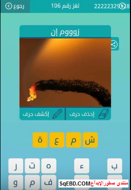 جواب لغز زوووم ان لغز رقم 106 من المجموعة الثانية عشر من لعبة كلمات متقاطعة