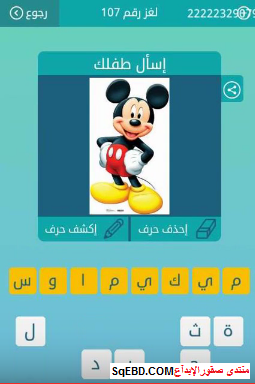 اجابة لغز اسال طفلك لغز رقم 107 من المجموعة الثانية عشر من لعبة كلمات متقاطعة