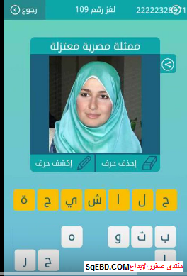 جواب سؤال ممثلة مصرية معتزلة لغز رقم 109 من المجموعة الثالثة عشر من لعبة كلمات متقاطعة