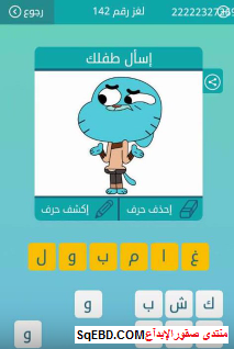 اجابة لغز اسال طفلك من لعبة كلمات متقاطعة لغز رقم 142 من المجموعة السادسة عشر