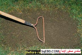 3- تخطيط أرض المسطح بعصا لتسهيل معرفة الأماكن التي سيتم بذرها .