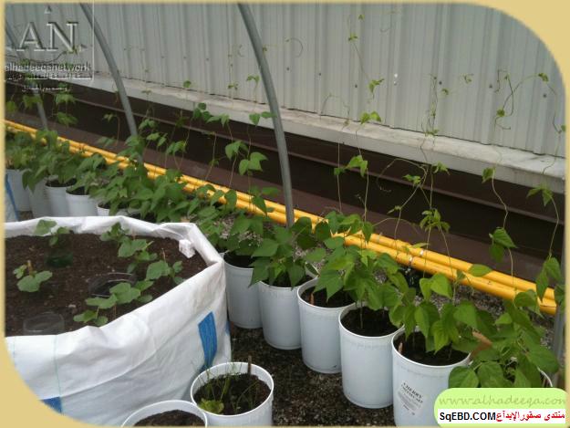 وكما هو الحال مع اشتال الجزر والخضر بدأت الفاصولياء .... في النمو في عبوات الايس كريم التي تم اعادت تدويرها واستعمالها كما هو الحال في جوانب البيت في حين بدات بعض اصناف الخيار الخاصه بالتخليل بالنمو والظهور في اكياس الحبوب المستعمله وجميع هذه البذور حصلو عليها من احد الشركات المتخصصه بانتاج البذور الخاصه بالزراعة العضويه