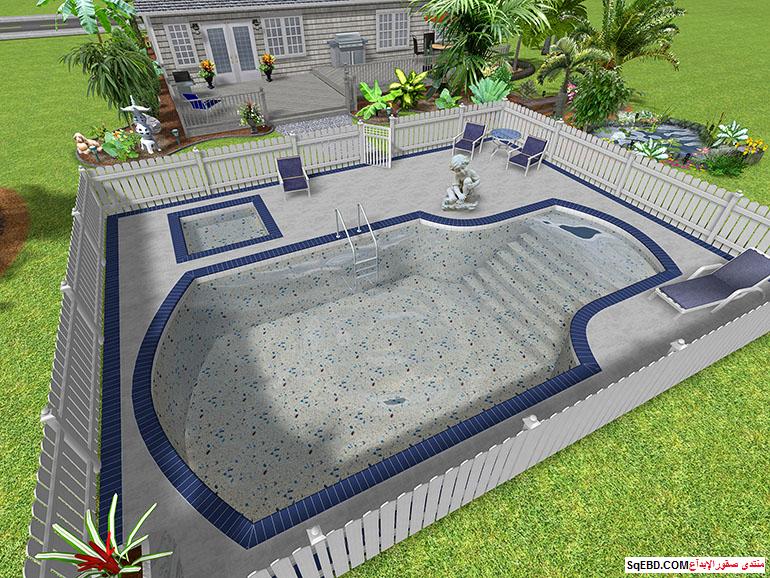 حدد تفاصيل بركة السباحة الطول والعرض وشكلها..