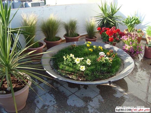 حديقة مصغرة .. مسطح اخضر .. ازهار ... وجمال في المنظر ... حدائق الاسطح