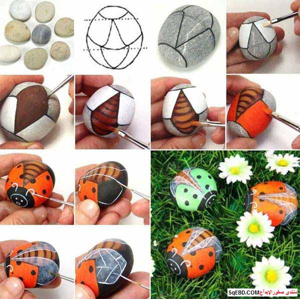 قم بعمل السيدة خنفساء من الحجارة بتلوينها واخراجها بشكل جميل