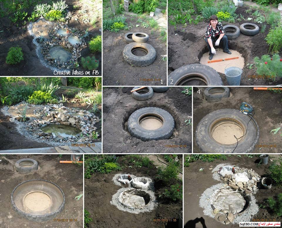 فكرة اليوم تقوم على مبدا استغلال الاطارات المستهلكه والغير صالحه للاليات والسيارات واعادة تدويرها لتحويلها الى مسطح مائي جميل يعطي الحديقة شيء من البهجه والحركه وباسلوب سهل وبسيط ولا يحتاج مهارات ومتخصصين