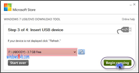 بعد التعرف عليه اضغط على Begin Copying لبدء عملية النسخ على الفلاش