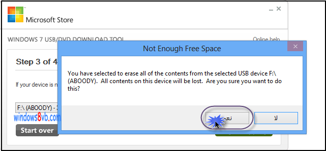 وحذف كافة الملفات الموجودة بالفلاش وبدء عملية تنصيب النظام على الفلاش