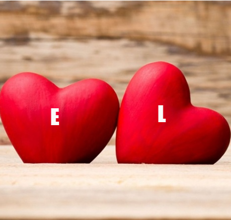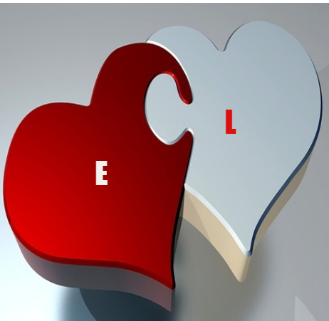 حرف E مع حرف K على صورة قلبين مع بعض